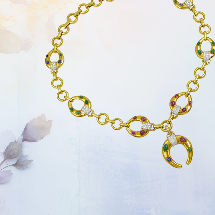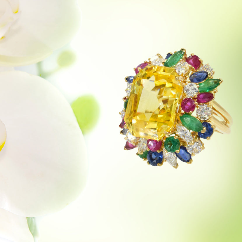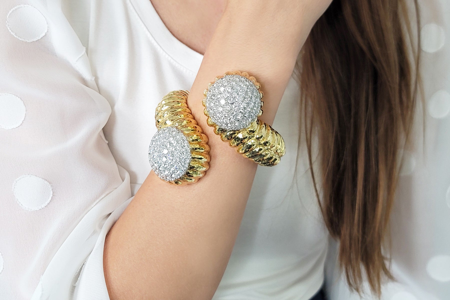 Diamond & Multicolor Gem Cuff Bracelet In 14k Yellow Gold