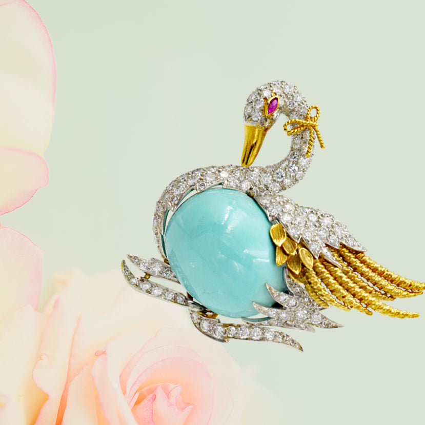 1970's Pink & Blue Sapphire & Diamond Turtle Brooch in 18k Yellow Gold