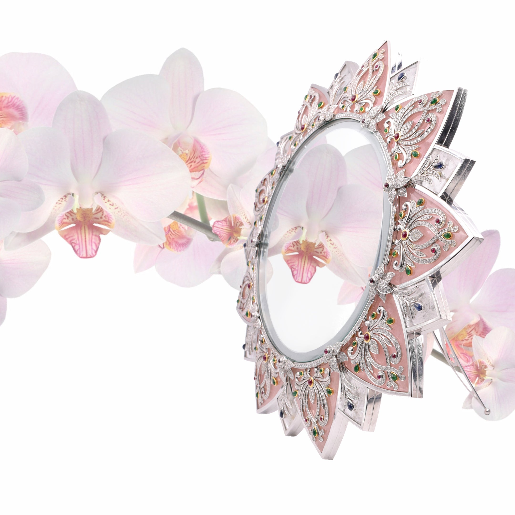 Art Deco Diamond, Emerald & Ruby Flower Brooch in Platinum