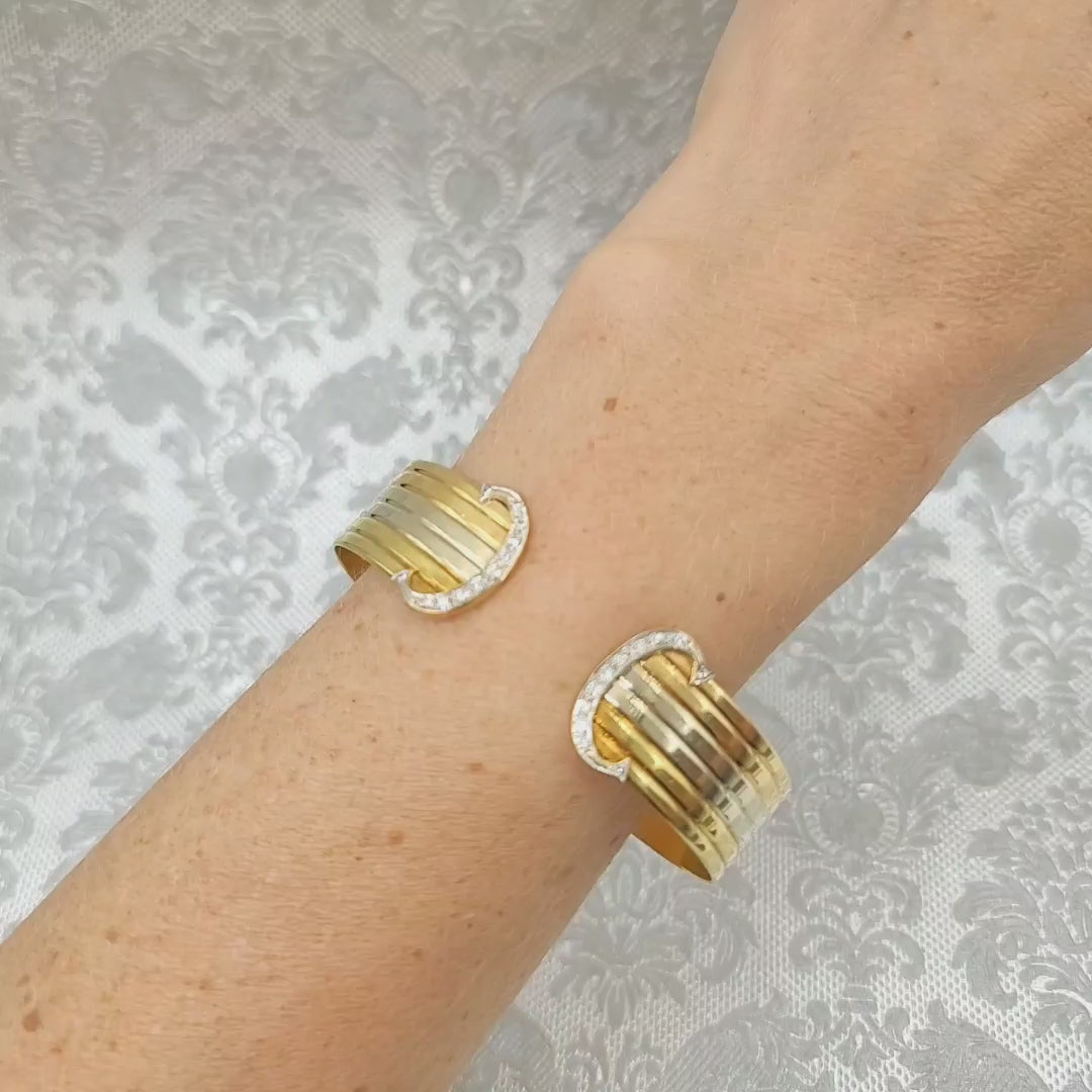 Diamond C de Cartier cuff bracelet, crafted in 18k yellow, white and rose gold, with two 'C's' at the ends accented with 22 round diamonds.