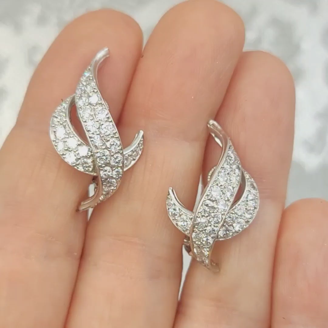 Harry Winston "X" design, diamond earrings, crafted in platinum, pave set with 62 round brilliant cut diamonds, secured with omega backs.