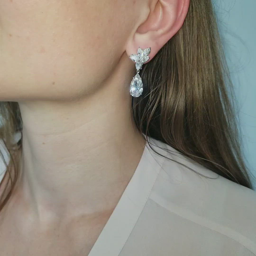 Iconic diamond earrings with detachable pendants by Harry Winston, crafted in platinum, featuring two pear shaped diamonds, suspended from cluster of 12 pear shaped diamonds. Secured with post and omega fastening.