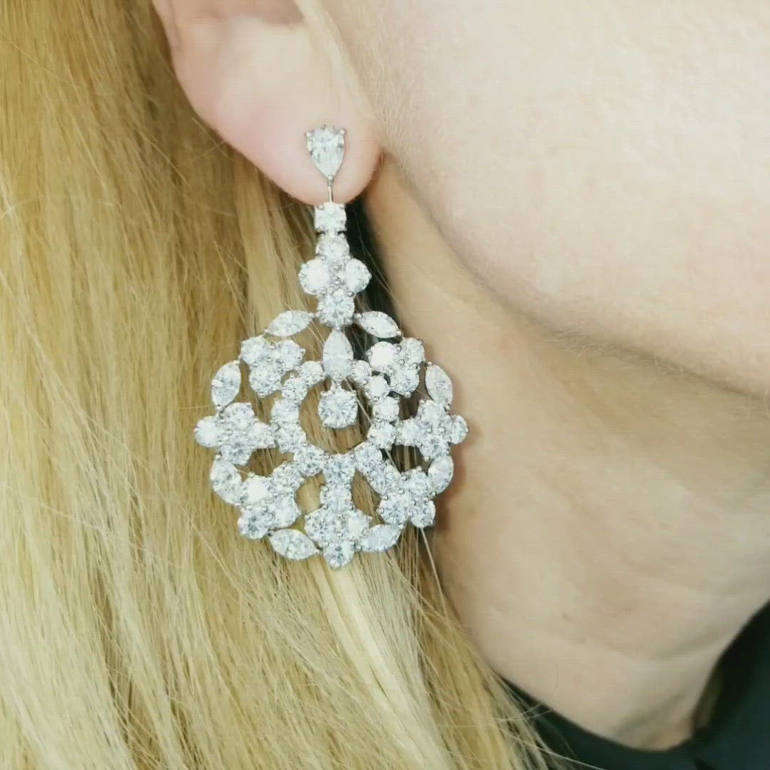 Diamond pendant earrings by Graff, crafted in 18k white gold, collectively set with approximately 28.50ct diamonds. secured with post and omega fastening.