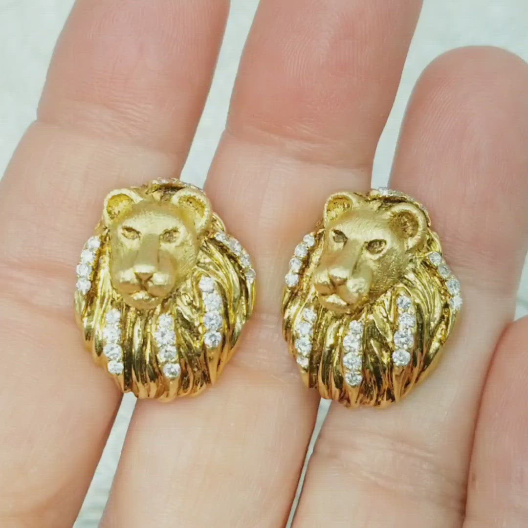 Diamond Lion Head Cufflinks in 18k Yellow Gold by Nally