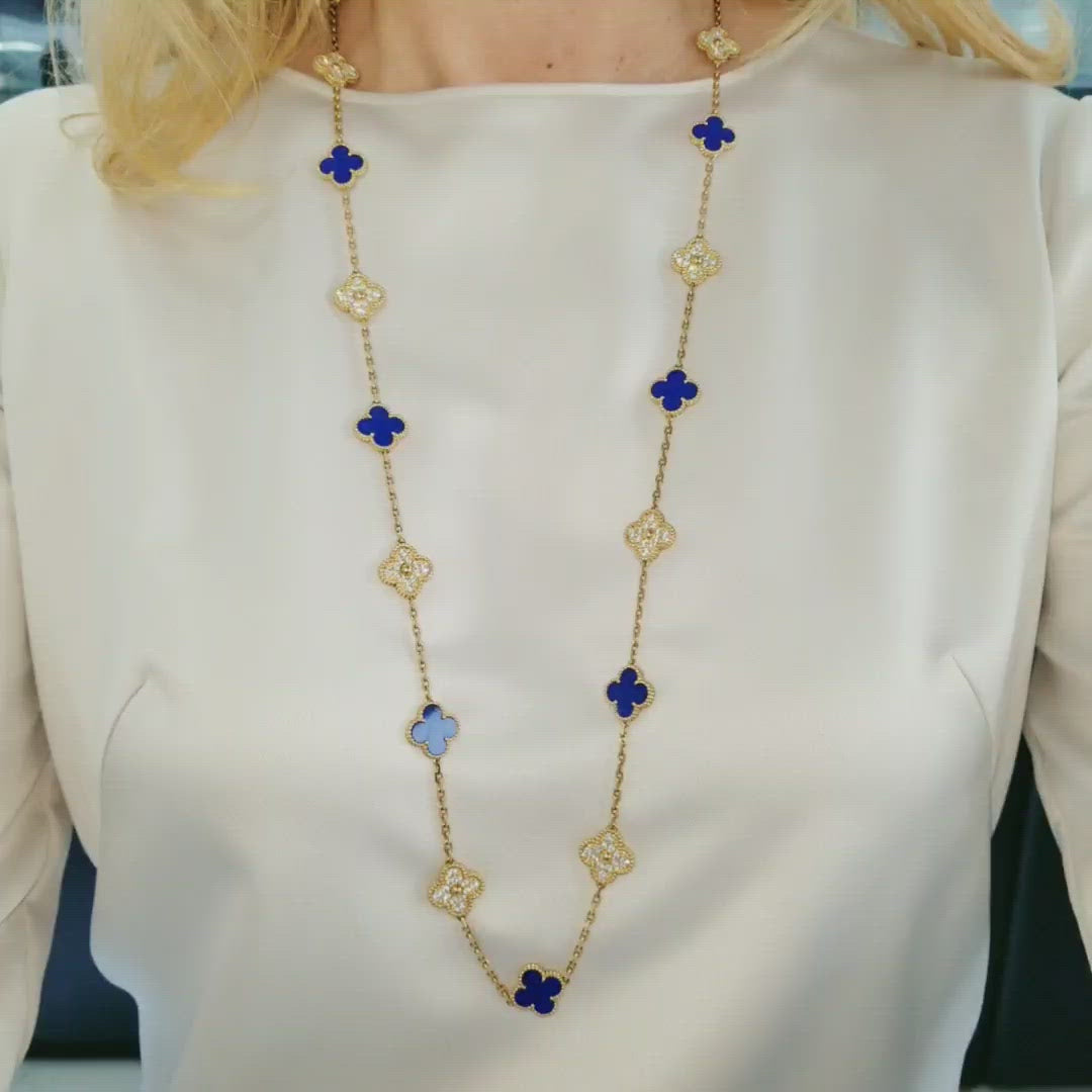 Iconic Diamond & Lapis Lazuli Alhambra Necklace by Van Cleef & Arpels