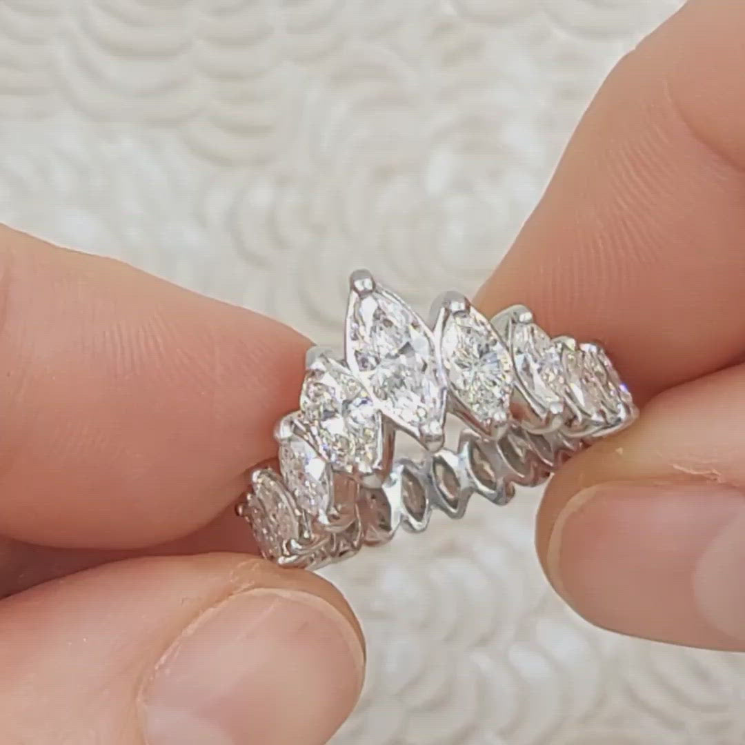 Wedding and anniversary band, crafted in platinum, designed as an eternity ring, set with 24 graduated marquise brilliant cut diamonds, featuring a center stone of approx. 0.40ct.