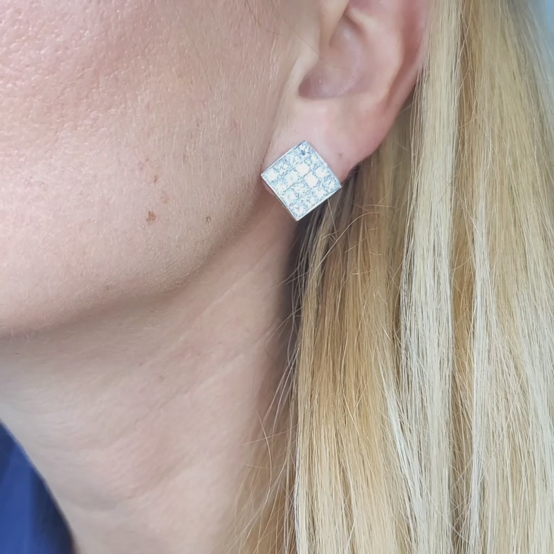 Tiffany & Co diamond earrings, crafted in 18k yellow gold, collectively adored with 32 invisible set princess cut diamonds, secured with post and omega back.