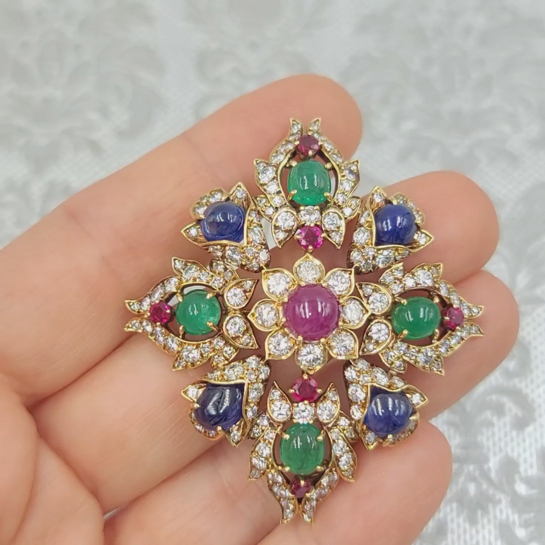 1960's Ruby, Emerald, Sapphire & Diamond Brooch & Pendant by Van Cleef & Arpels