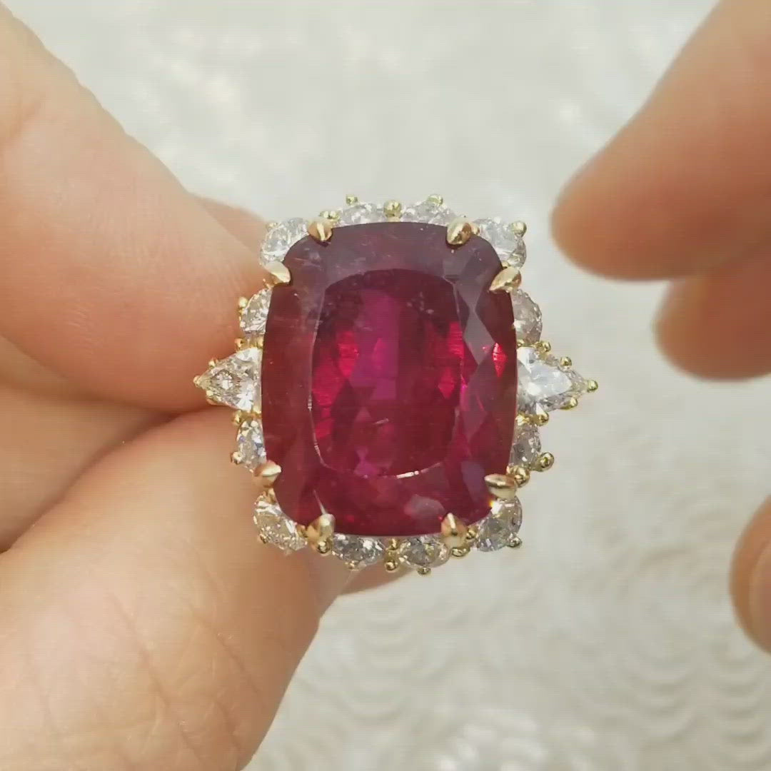 25.41ct Rubellite & Diamond Ballerina Cocktail Ring In 18k Yellow Gold