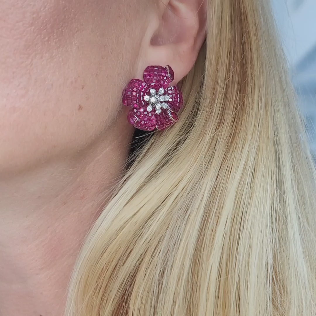 39.47ct Invisibly Set Ruby & Diamond Flower Earrings