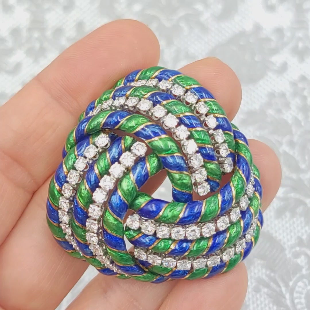 Vintage 6ct Diamond & Enamel Brooch by David Webb