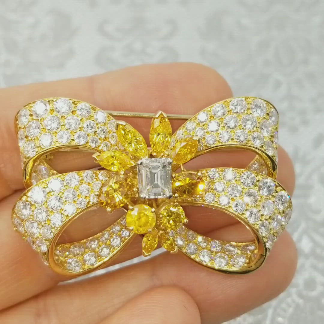 10.20ct Yellow & White Diamond Bow Brooch in 18k Yellow Gold