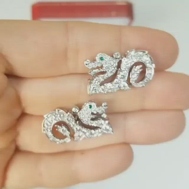 Cartier 2001 Diamond Dragon Cufflinks In 18k White Gold