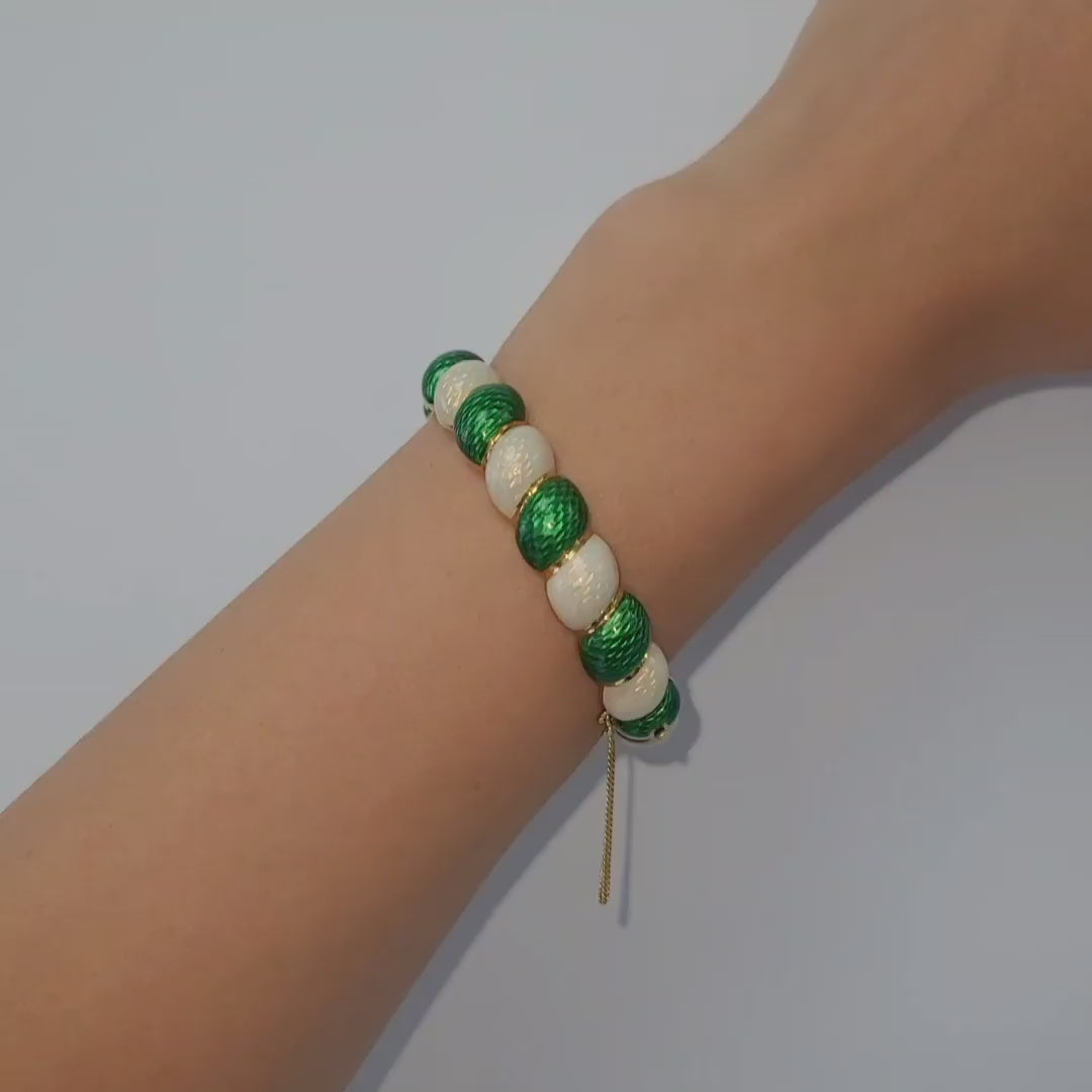 Tiffany&Co. Green And White Enamel Bracelet Crafted In 18K Yellow Gold